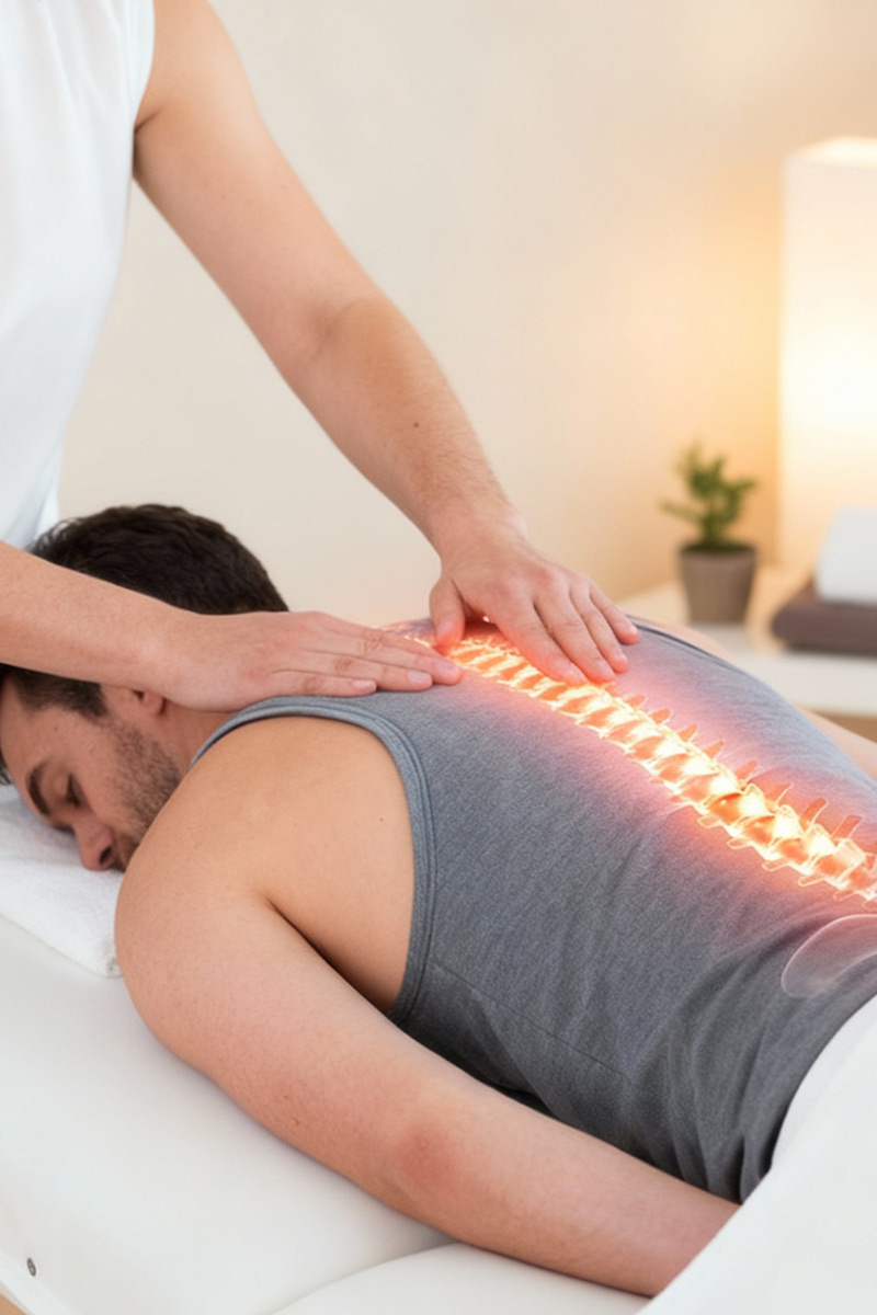 z. B. bei Schmerzen im unteren Rücken (Lendenwirbelsäule) nach langem Sitzen oder körperlicher Arbeit. Durch gezielte Griffe wird die Rückenmuskulatur entspannt und die Beweglichkeit verbessert.